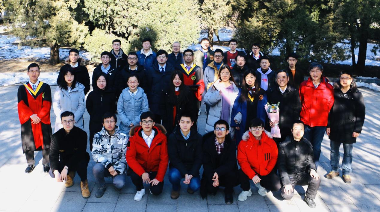 与团队学生合影