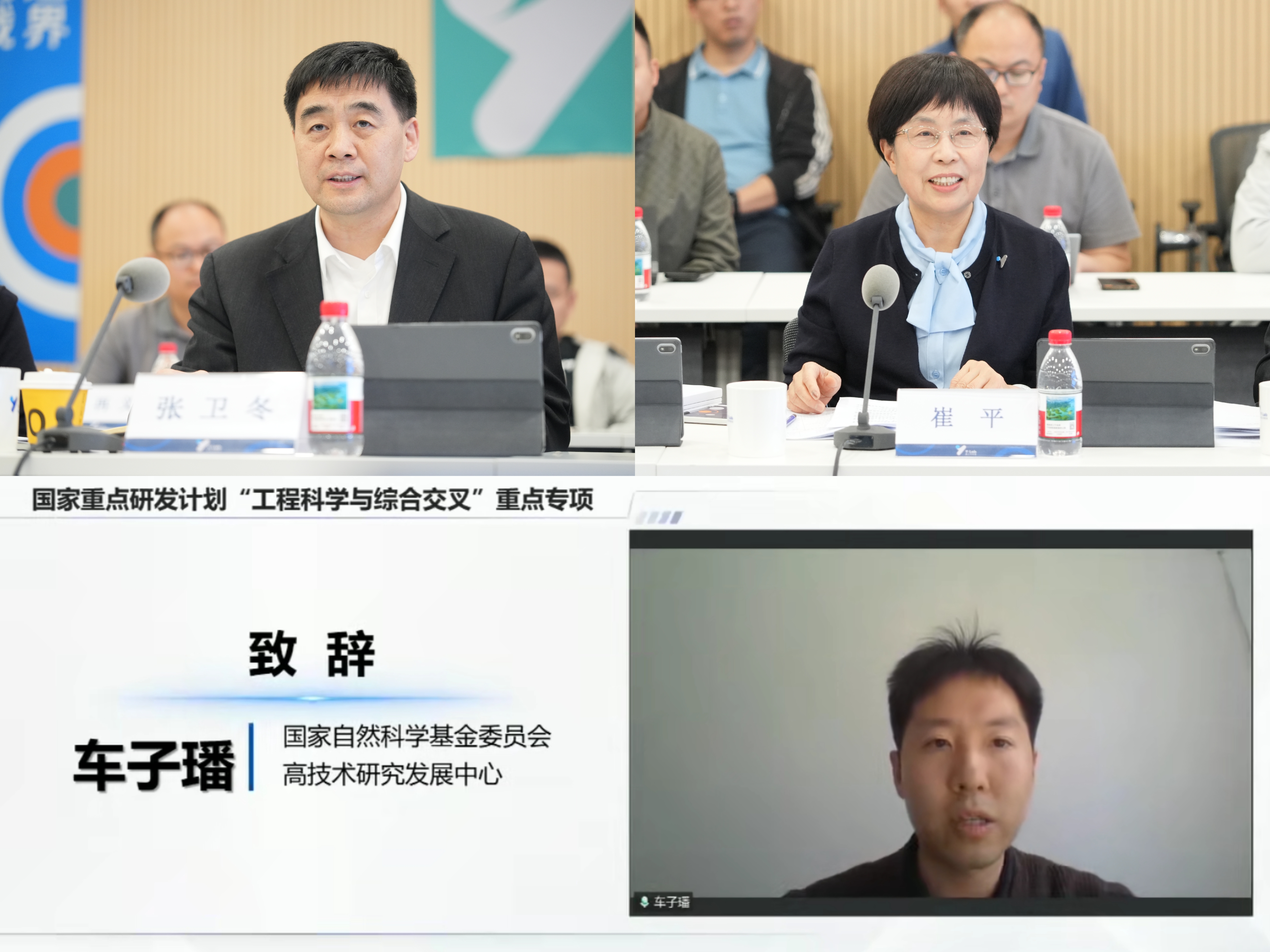 张卫冬副校长在致辞中对各位领导、专家出席项目启动会表示最热烈的欢迎和最诚挚的谢意。他表示,项目的成功获批,凝聚着各方的厚爱和支持,作为牵头单位,北京科技大学将严格遵循国家自然科学基金委高技术研究发展中心的要求,完善全流程监督机制,强化风险防控与资源保障,为项目团队提供科研条件、经费协调及跨学科协作的全方位支持。崔平主任在致辞中表示,各课题参与单位在项目执行过程中应加强相互之间的协同合作,全力以赴突破航空发动机核心材料的关键瓶颈问题,圆满完成项目任务。车子璠副处长代表项目管理机构发表讲话。他介绍了“工程科学与综合交叉”重点专项的设立初衷,强调项目应聚焦先进陶瓷材料在航空发动机领域应用中面临的关键科学问题与核心技术瓶颈开展攻关,依托多学科交叉融合,系统开展基础与应用研究,着力突破一批原创性理论成果与关键技术方法,为实现航空发动机领域工程技术水平的提升提供支撑。